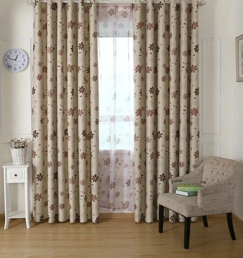 Dodaj Stylu z Beżową Zasłoną Zaciemniającą w Brązowe Kwiaty