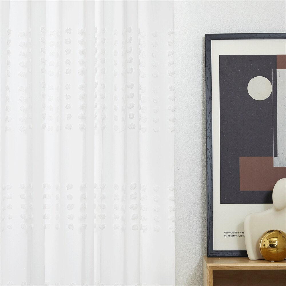 Biała firana z ozdobnymi kropkami – Odkryj Urok Delikatnego Designu