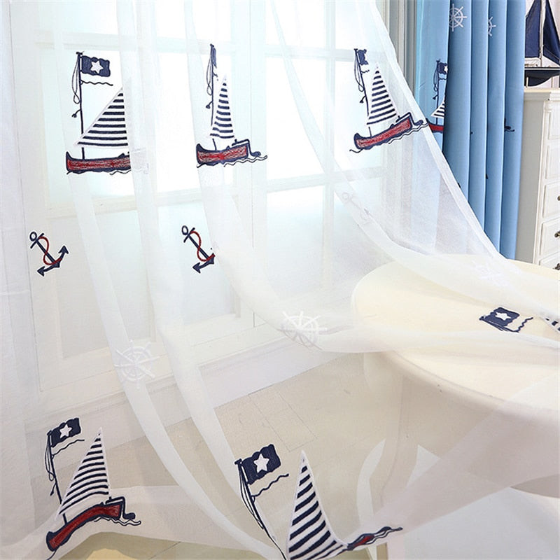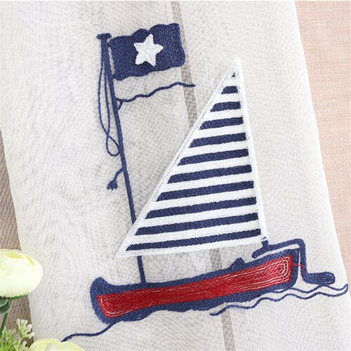 Odkryj Urok: Firana lniana z haftowaną żaglówką
