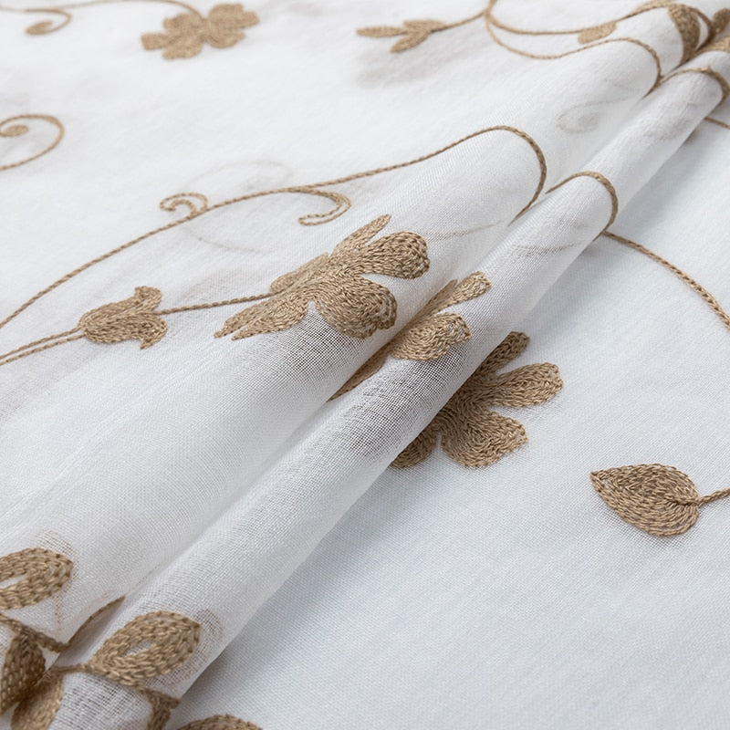 Firana z haftem w kwiatowe pnącza