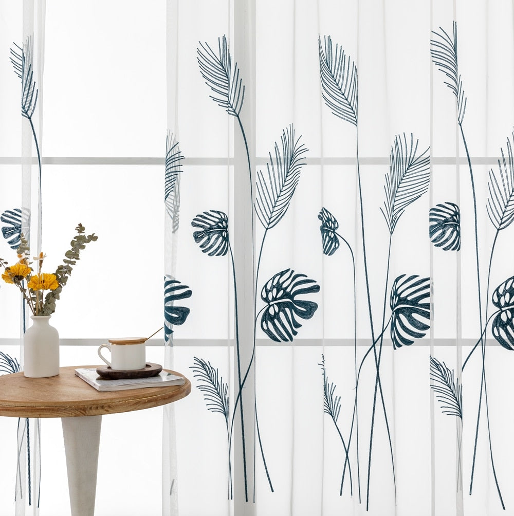 Poczuj Bliskość Natury z Firana z Haftowanymi Liśćmi Monstery