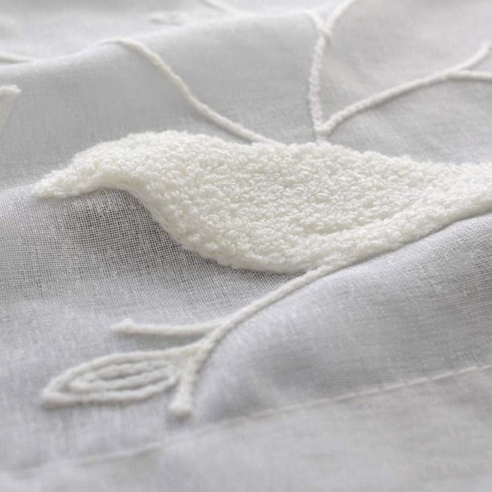 - Design Inspirowany Naturą: Delikatne haftowane ptaszki i gałązki dodają wnętrzu świeżości i sielskiego uroku.
