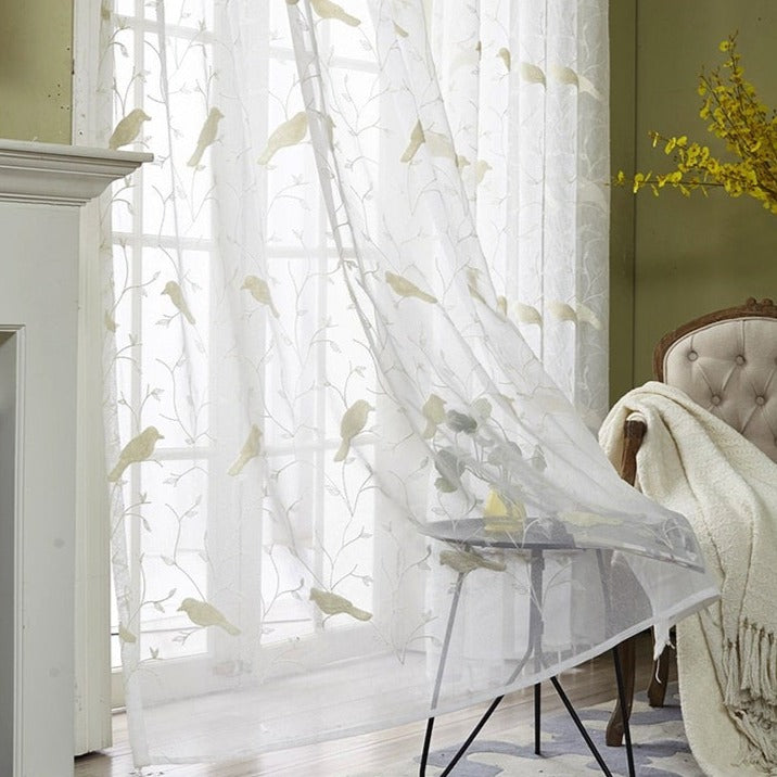 Stwórz Wymarzone Wnętrze z Firaną z Haftowanymi Ptaszkami na Gałązkach