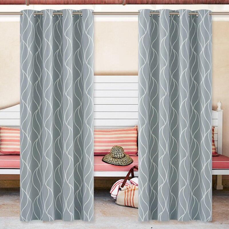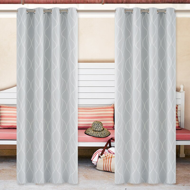 Jasnoszara zasłona ogrodowa w falisty wzór.