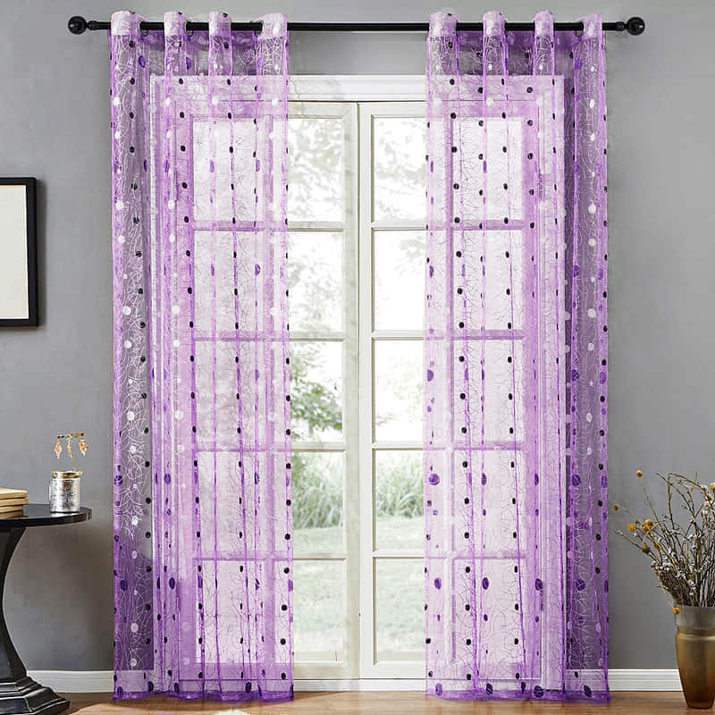 Urokliwa Lawendowa Firana z Haftowanym Wzorem – Odmień Swoje Wnętrze!