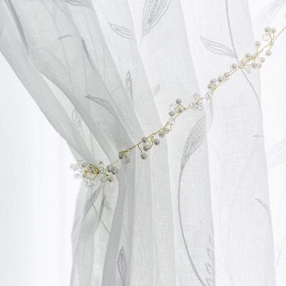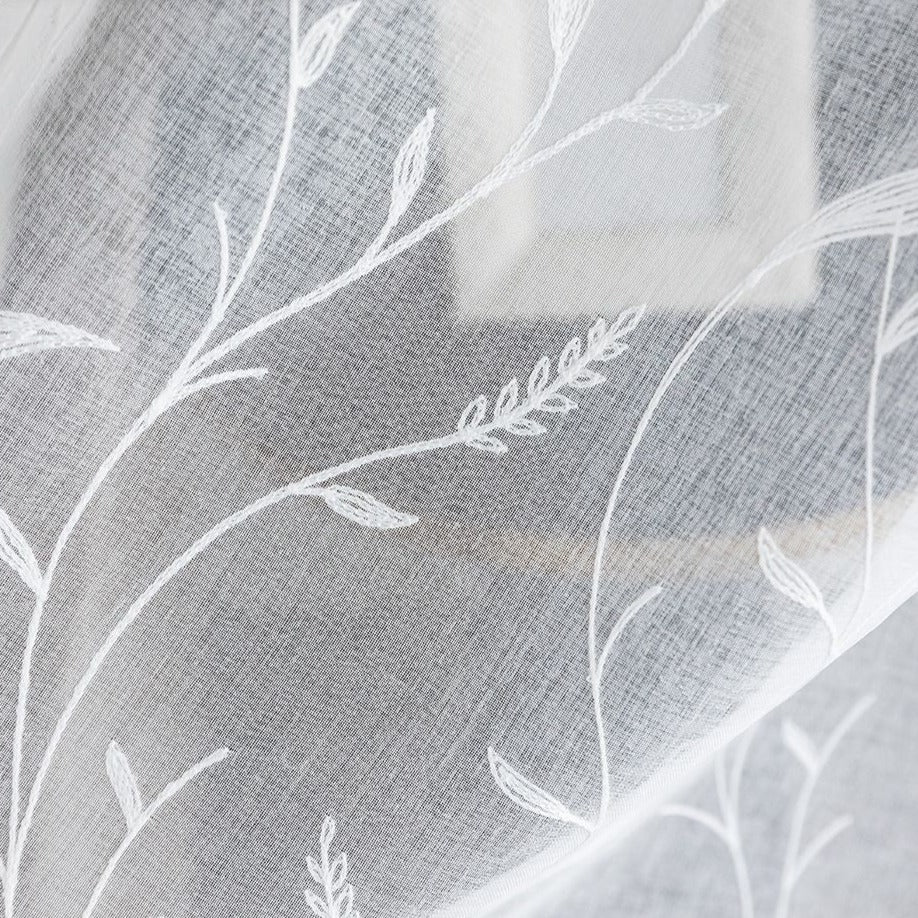 Lniana Firanka z Białym Haftem Roślinnym – Naturalny Akcent w Twoim Domu