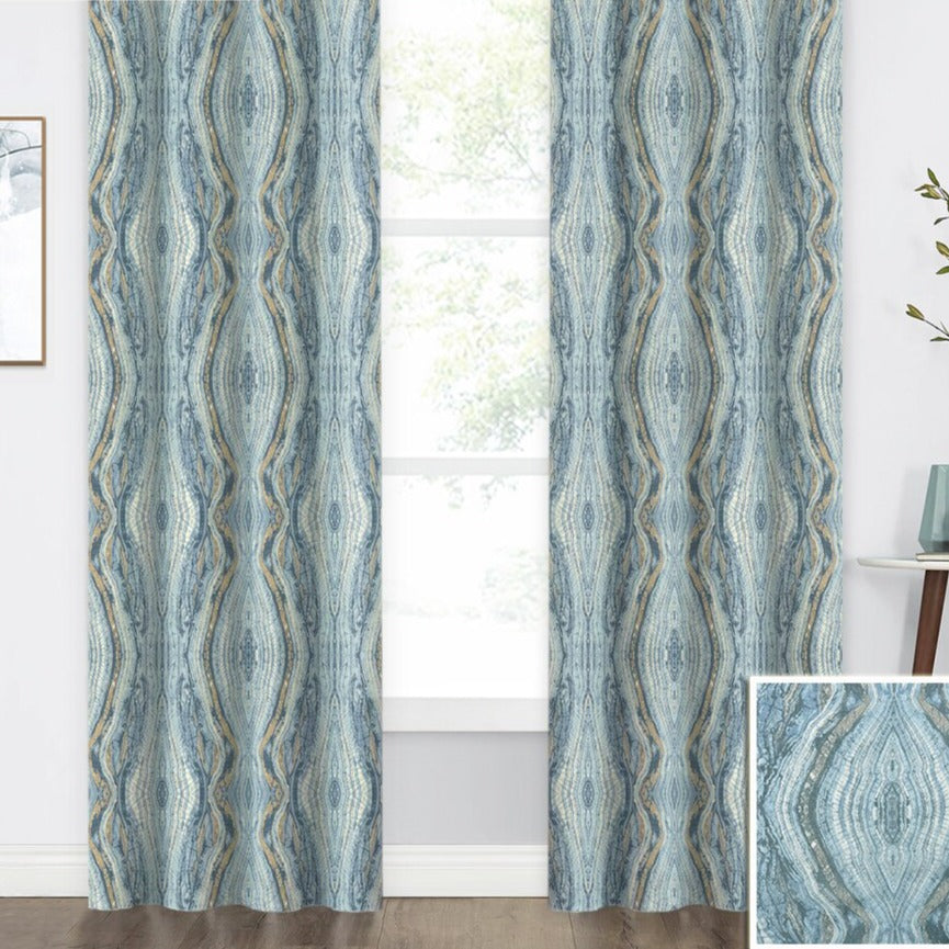 Wyobraź sobie przestrzeń, która tętni życiem, a jednocześnie emanuje spokojem. Nasza nowa zasłona to coś więcej niż tylko element dekoracyjny – to dzieło sztuki, które ożywi każde pomieszczenie. Jej wyjątkowy, abstrakcyjny wzór, inspirowany głębią natury, przypomina warstwy minerałów lub pnie drzew, tworząc fascynującą grę linii i cieni. Dominujące odcienie błękitu i szarości przeplatają się z ciepłymi akcentami beżu i złota, nadając tkaninie niezwykłą głębię i trójwymiarowość. Ta zasłona to idealny sposób, aby w prosty sposób wprowadzić do swojego domu odrobinę luksusu i nowoczesnego designu. Poczuj, jak otoczenie staje się bardziej wyrafinowane i pełne charakteru.