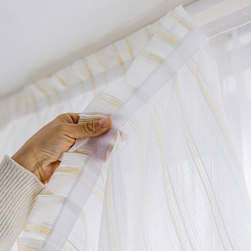 Odkryj Naszą Elegancką Półprzezroczystą Zasłonę w Paski na Rzep
