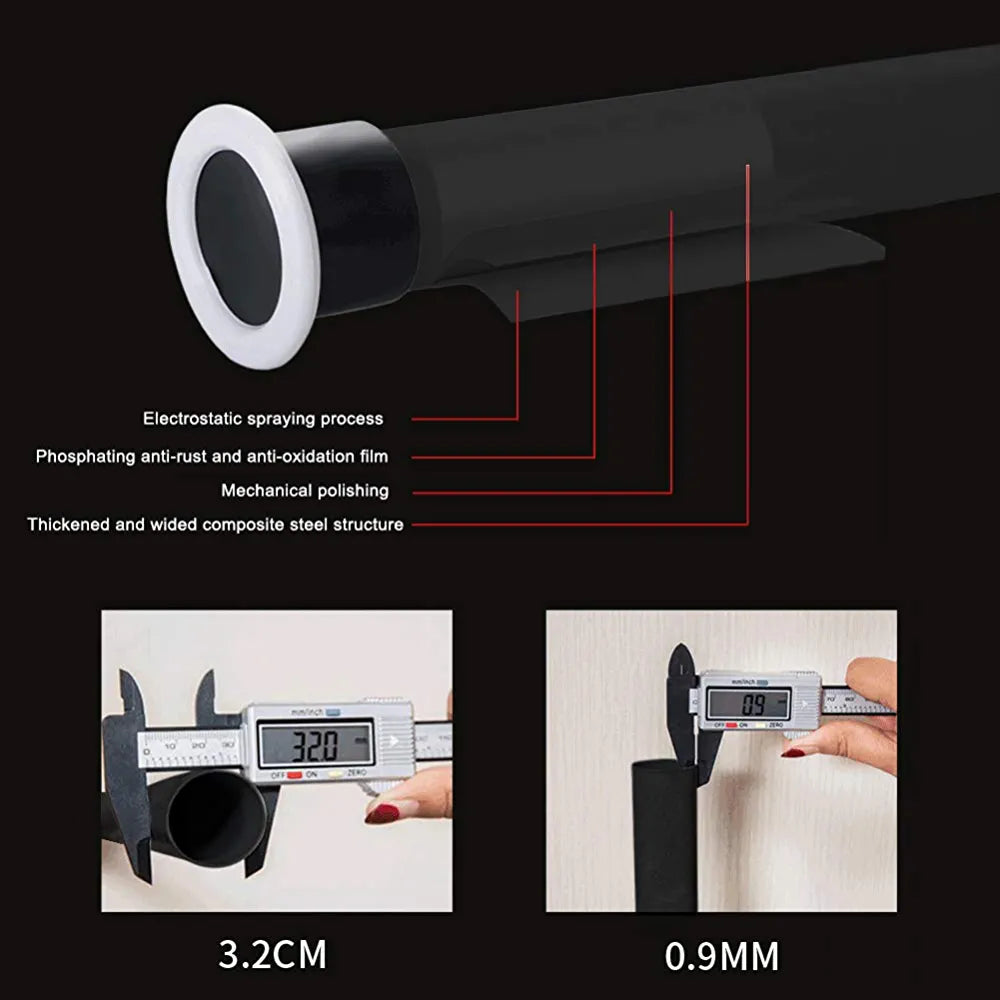 - Stabilne i Bezpieczne Mocowanie: Dzięki mechanizmowi rozporowemu, drążek utrzymuje się mocno i pewnie, chroniąc Twoje zasłony przed upadkiem.