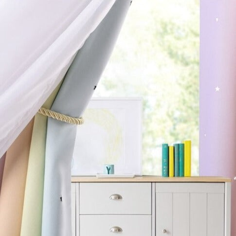 Wyobraź sobie ciepły, letni wieczór na Twoim tarasie, delikatnie oświetlony blaskiem zachodzącego słońca. Nasza tęczowa zewnętrzna firanka na taras to idealny sposób, aby zamienić tę wizję w rzeczywistość. Zaprojektowana z myślą o elegancji i funkcjonalności, ta firanka doda Twojej przestrzeni zewnętrznej bajkowego uroku, jednocześnie zapewniając prywatność i ochronę przed nadmiernym słońcem. Jej subtelne, pastelowe odcienie tworzą harmonijną paletę kolorów, która pięknie komponuje się z każdym otoczeniem, od nowoczesnych po rustykalne aranżacje. Drobne, błyszczące gwiazdki, dyskretnie rozsiane po materiale, mienią się w świetle, dodając magicznego akcentu, który zachwyci zarówno Ciebie, jak i Twoich gości. To więcej niż tylko firanka – to zaproszenie do relaksu i czerpania radości z każdej chwili spędzonej na świeżym powietrzu.