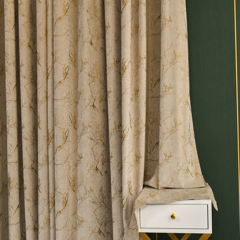 Zasłona kryjąca ze złotym marmurkowym wzorem: Odkryj Luksus w Twoim Domu