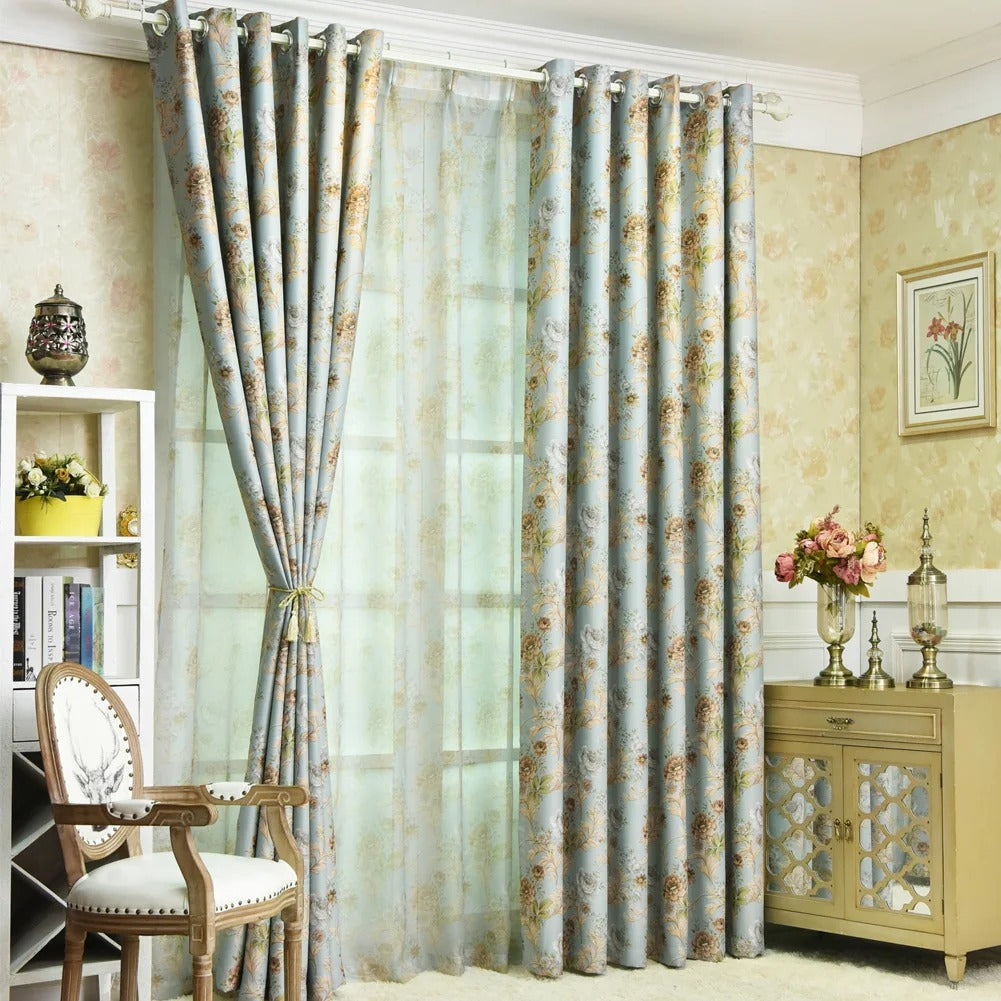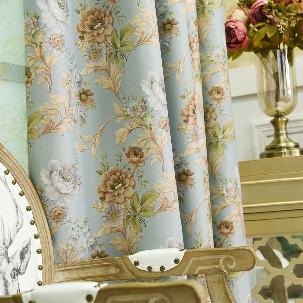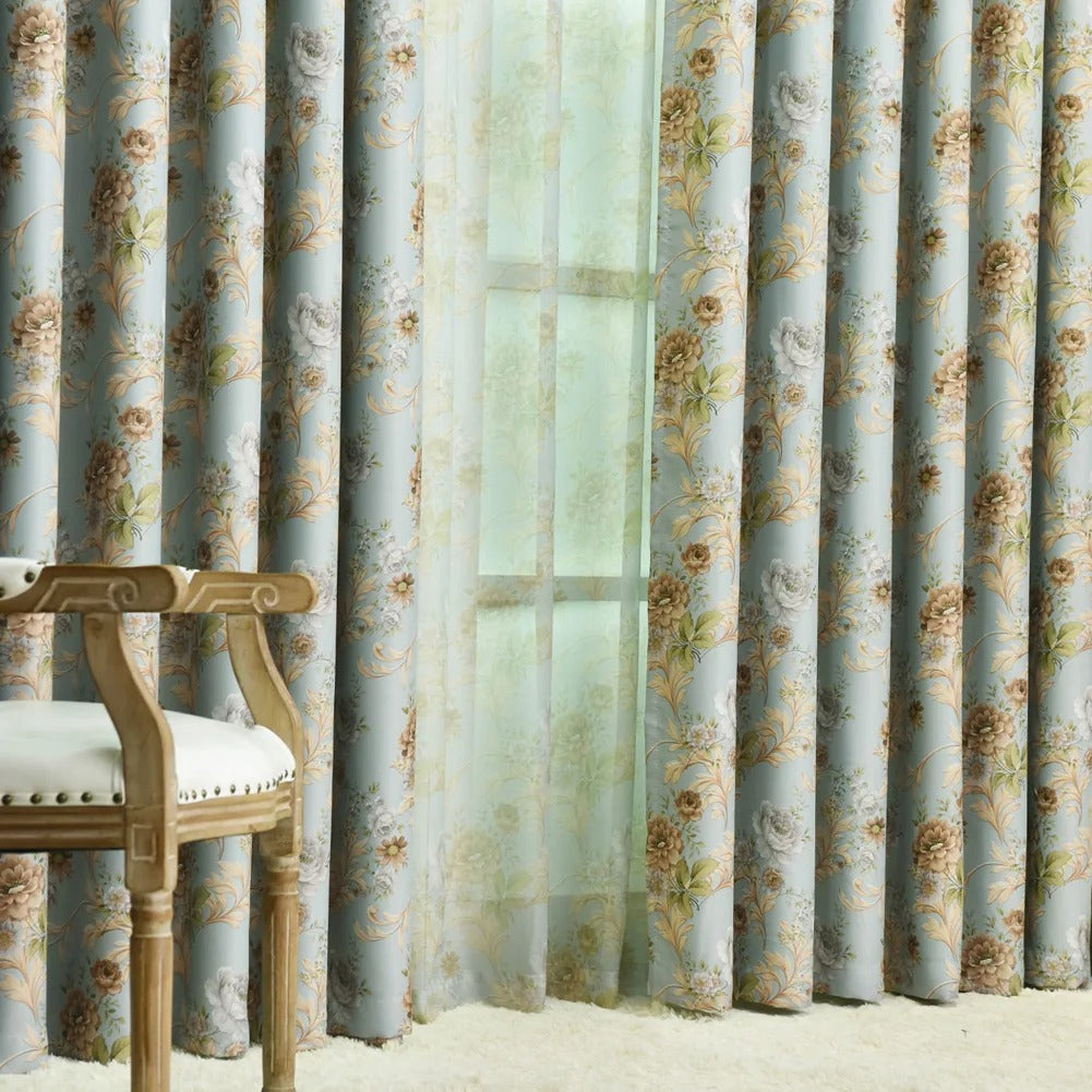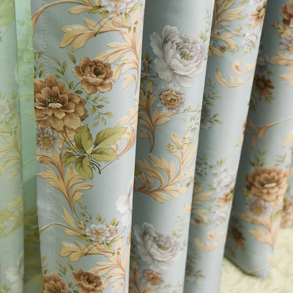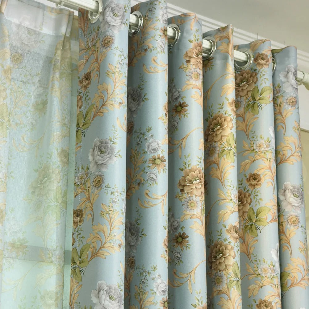 Marzysz o sypialni, w której panuje idealna ciemność o każdej porze, a jednocześnie chcesz, by Twoje okna zachwycały subtelnym pięknem? Nasza ekskluzywna zasłona zaciemniająca w kwiatowy wzór to idealne rozwiązanie! Stworzona z myślą o tych, którzy cenią sobie zarówno funkcjonalność, jak i wyrafinowany styl, ta zasłona natychmiast odmieni Twoje wnętrze. Jej delikatny, ale wyrazisty wzór kwiatowy w odcieniach pudrowego błękitu i złocistych beżów wprowadzi do Twojego domu atmosferę spokoju i ponadczasowej elegancji, jednocześnie skutecznie blokując niechciane światło.
