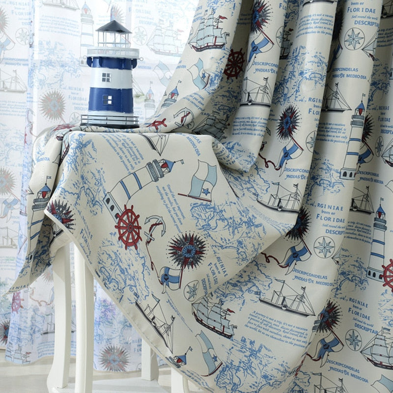 Wyobraź sobie, że każdego dnia budzisz się w swojej własnej morskiej przystani, otoczonej szumem fal i powiewem wiatru. Dzięki naszej wyjątkowej zasłonie zaciemniającej w motywy morskie, możesz przenieść ten błogi nastrój prosto do swojego domu! Idealna dla każdego, kto marzy o dalekich podróżach, kocha ocean i ceni sobie relaks w otoczeniu inspirujących widoków. Ta zasłona to nie tylko praktyczny element wyposażenia, ale prawdziwa opowieść o morskich wyprawach, pełna detali takich jak latarnie morskie, żaglowce, dawne mapy i kompasy, które pobudzą Twoją wyobraźnię i pozwolą Ci odpocząć od codzienności, jednocześnie gwarantując idealne zaciemnienie dla spokojnego snu lub prywatności.